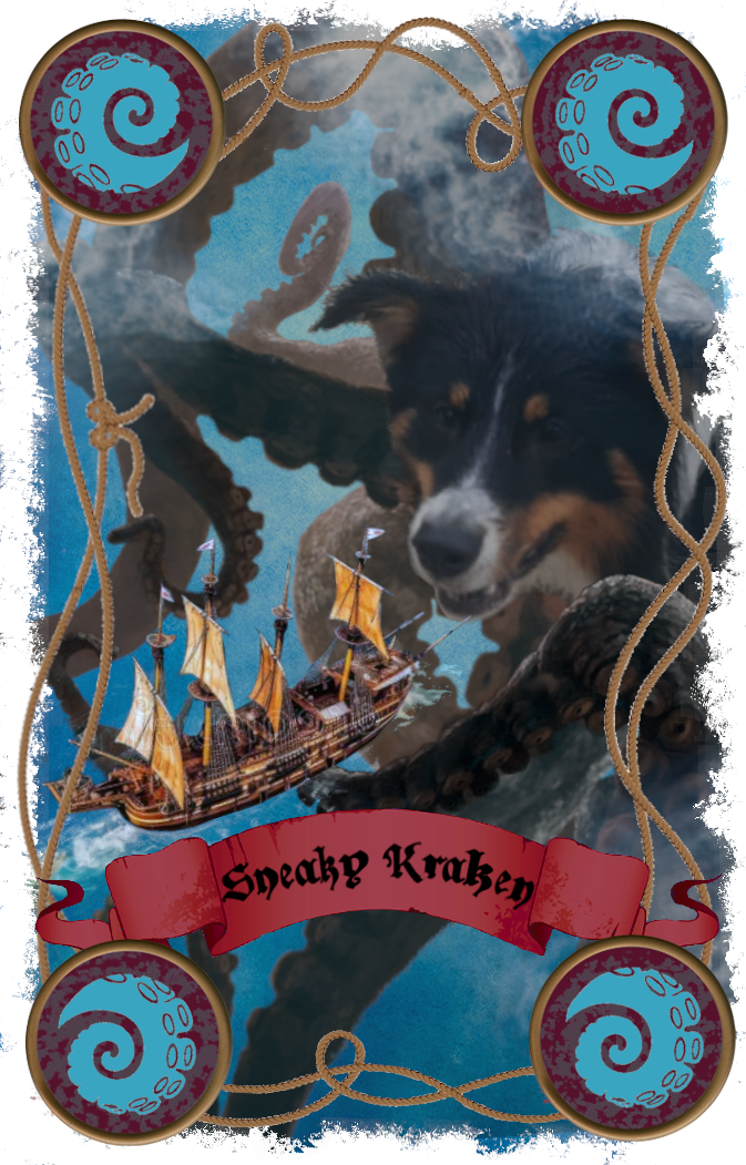 I created the playing deck in GIMP and edited pictures of my friends (and their dogs) as the pirates.